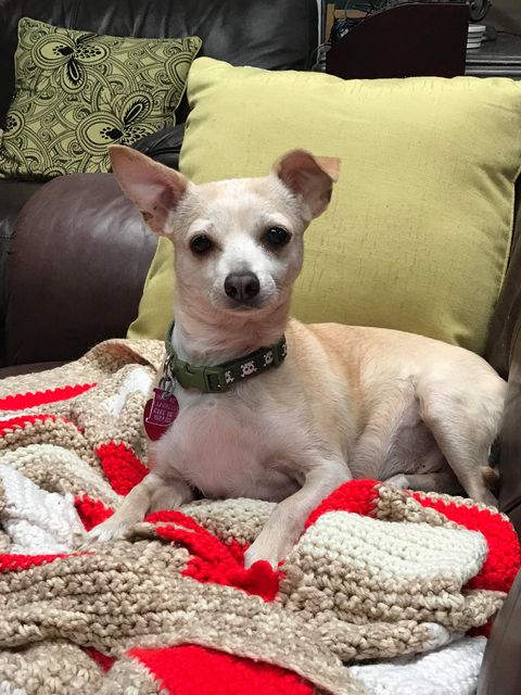 Butter Bean, one of Jilly Bean's puppies, chose to stay with her foster dad. Her new name is Pepper and her dad reports that she loves lounging on the couch - with a pillow and blankets, of course!