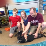 Handsome bulldog, Winston, was adopted today by a family with 5 girls (the oldest daughter wasn't available to be in the picture) to love on him and spoil him rotten! His new dad is happy to finally have another male in the family! :)