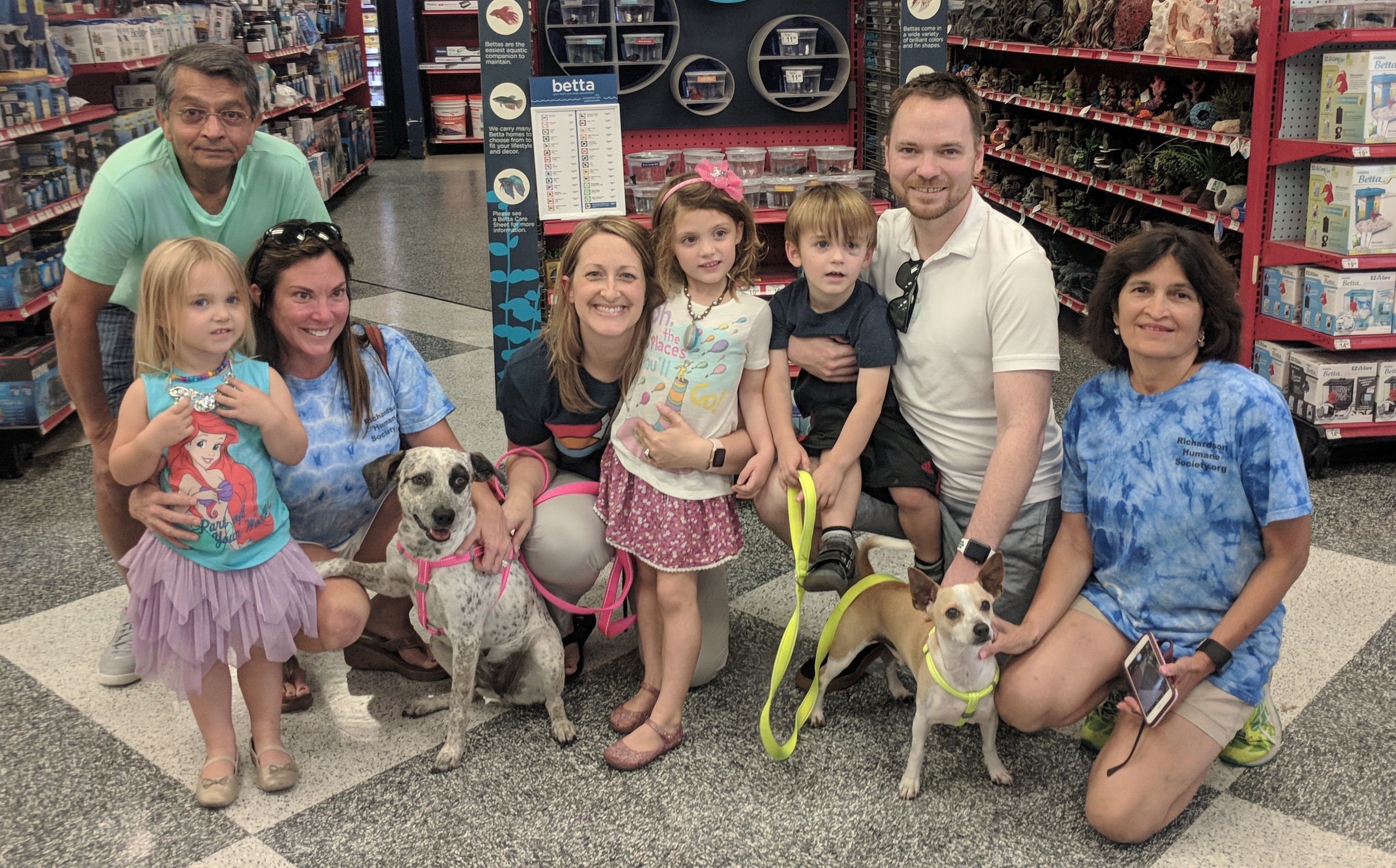 We had another special double adoption today - the last of Cozy's pups, Binny and Cowboy, decided to stay together as permanent members of their foster pack! Their foster mom, Amber, said they never intended to keep both pups (since she already has a young dog AND a teenager at home!) but they're so bonded…