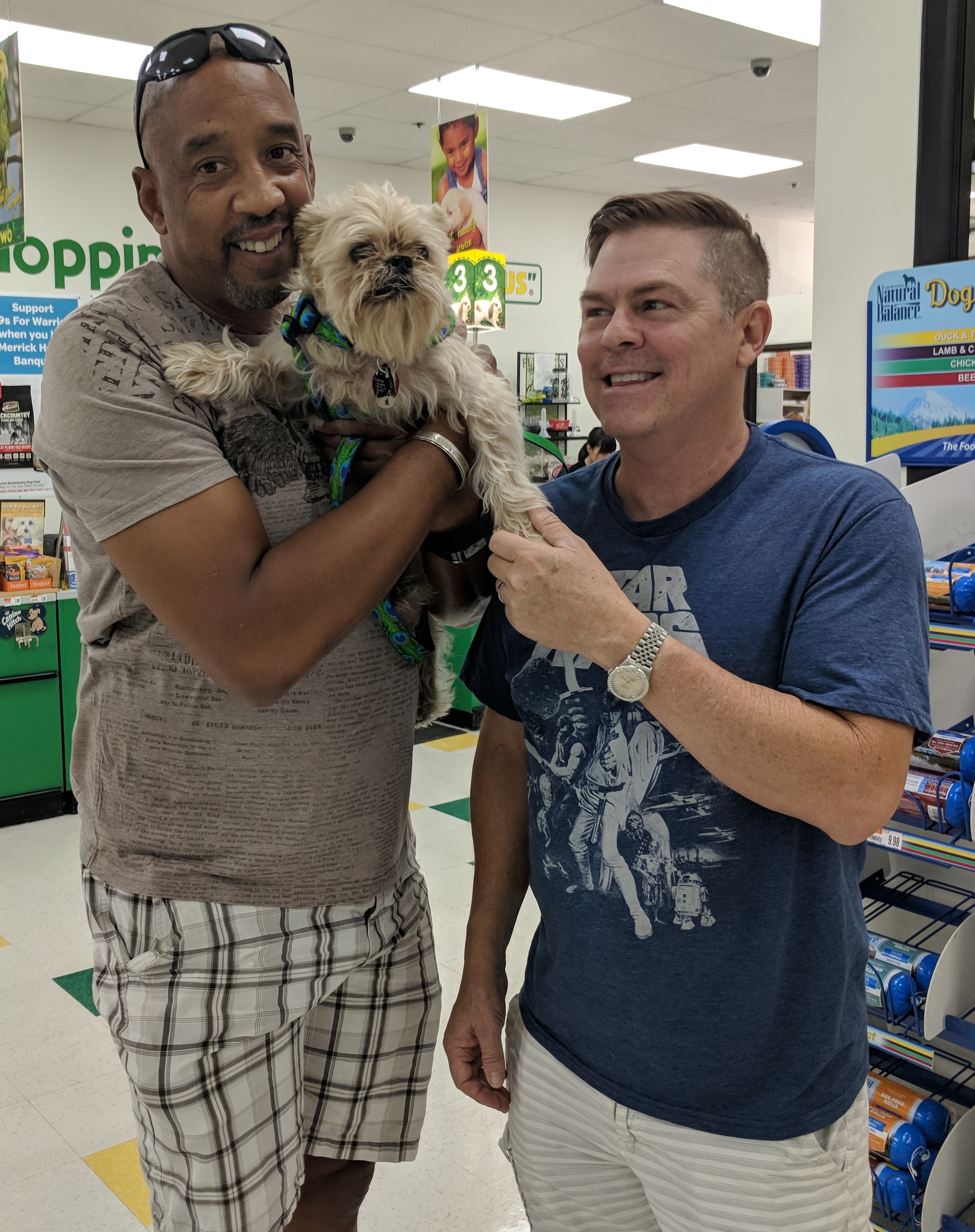 Senior Brussels Griffon Chewbacca went home with his two new dads Saturday afternoon. He also has a live-in uncle, so he will spend very little time alone. The family is also interested in fostering!