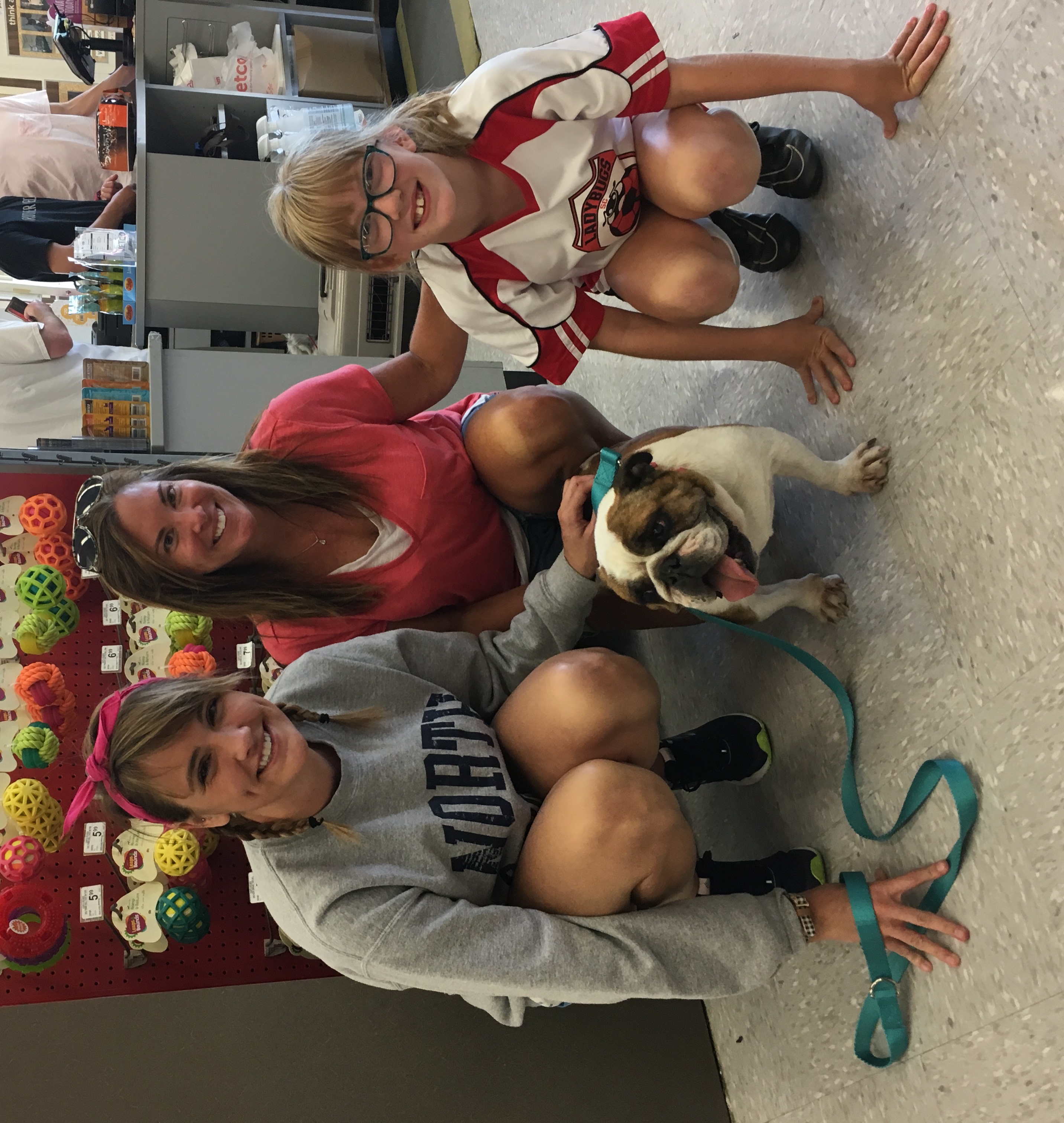 Adorable little Beti was adopted Saturday!  Her new mom has lots of experience with the breed, and Beti will have a bulldog sister, Helga, to play with (well, probably more like RELAX with – they ARE bulldogs, after all!).  Her new mom purchased matching pink bandannas for the two dogs AND herself, and has a collar on order for Beti to match the one Helga wears, which also matches the bracelet SHE wears!