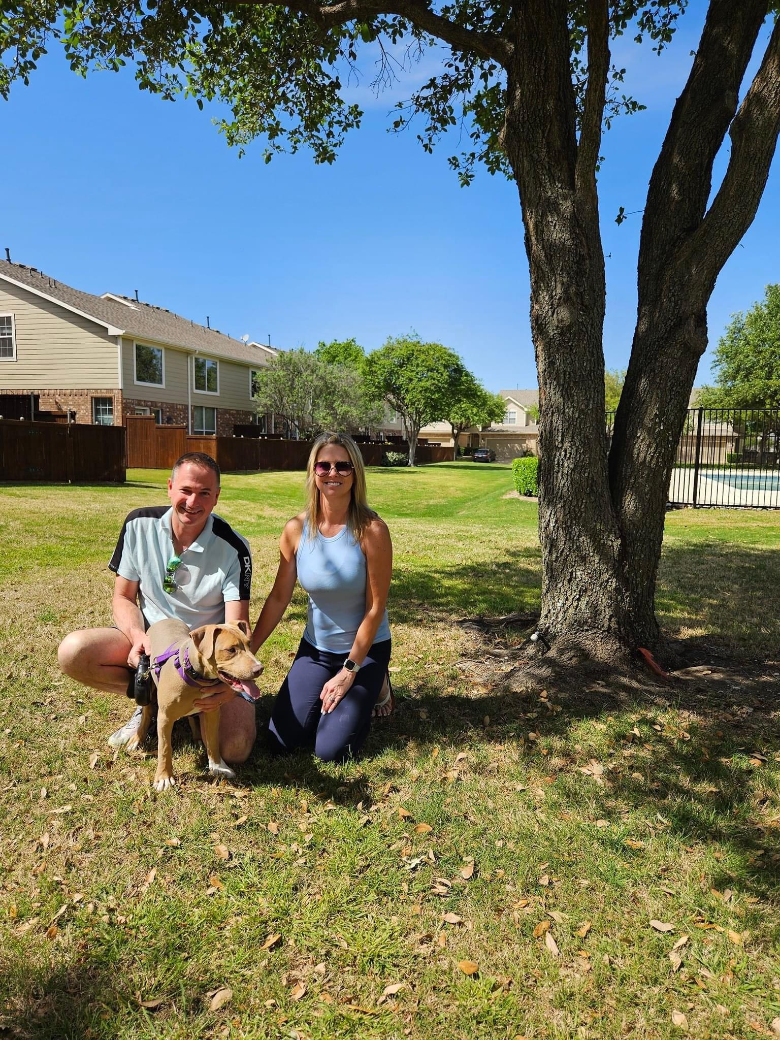 Cain was rescued from the Balch Springs Shelter and he came to us with terribly crooked front legs. For a while it looked like surgery might be in his future but changing his food to one that better met his nutritional needs cleared that issue up. Before long, he was romping and playing with foster, Naomy’s, other dogs, gaining strength as he went. You can see from the photos just how far he’s come!!