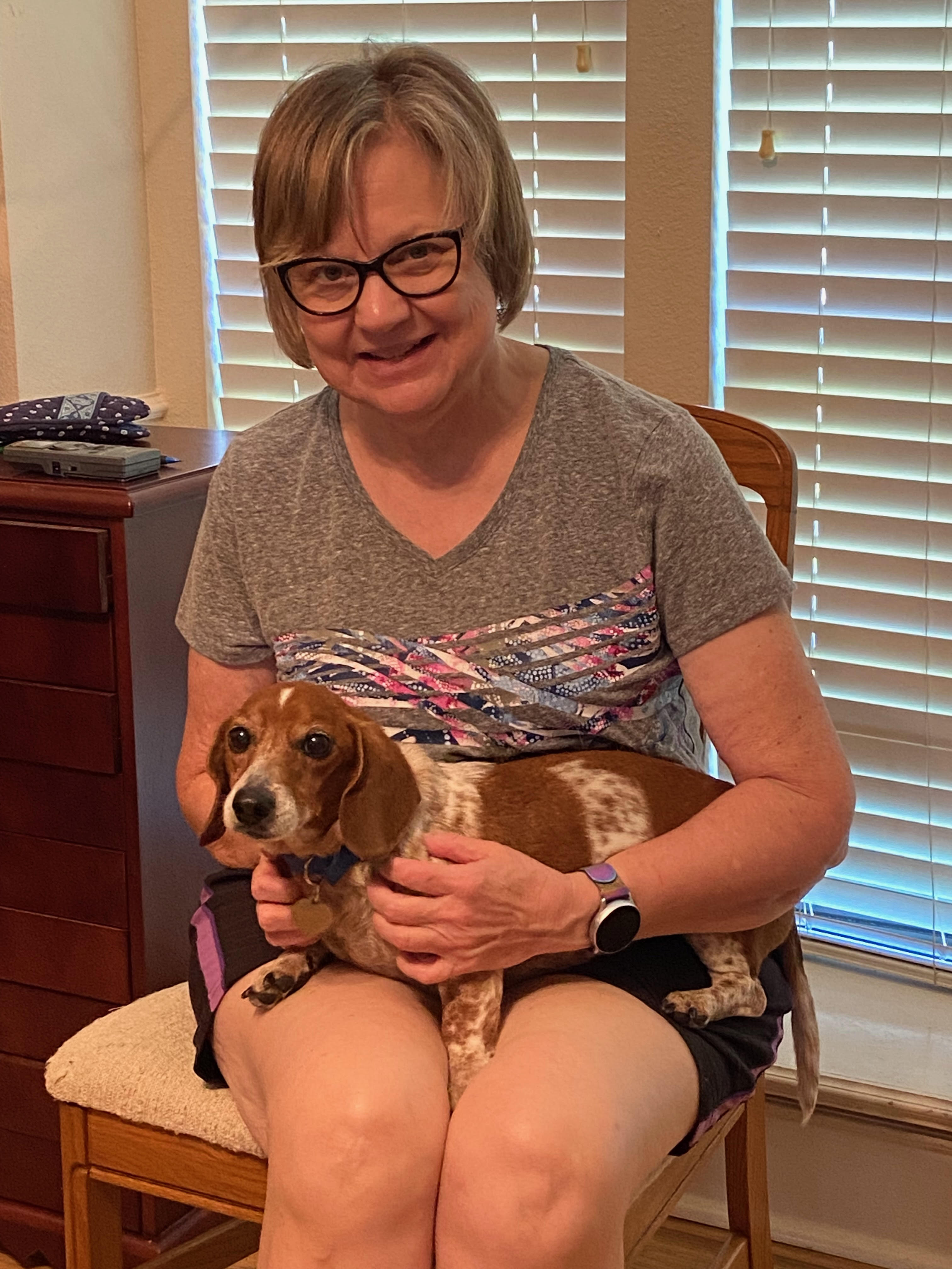 Sweet older dachshund gentleman Charlie Brown came into CCAS from a home where the owner had passed away. Unfortunately, the dogs were left alone for several weeks until they were discovered. We grabbed Charlie Brown and Sharon Hudak and her husband welcomed him in. He was in pretty rough shape physically and had to regain his health under Sharon’s loving care. Charlie’s devoted to her and now has the softest, most beautiful coat. Big thanks to the Hudaks and RHS alumna Peaches (was Caris)!