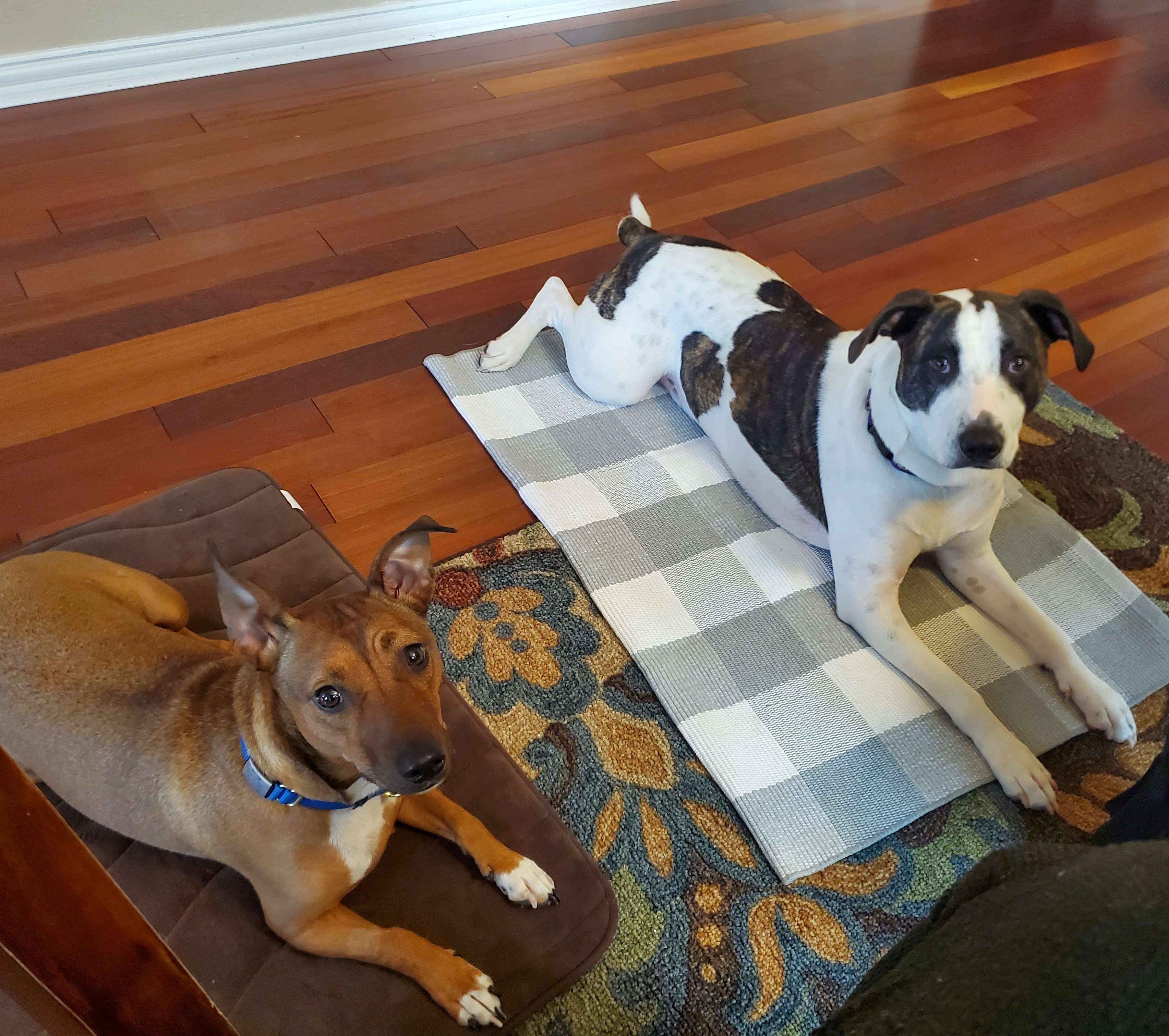 Handsome Fletcher has been adopted! Now known as Rocky, he joins a fun family with a mom and dad and a new canine sister named Rosie (the brown pup on the left). Judging from the photos, it looks like they are good friends already!