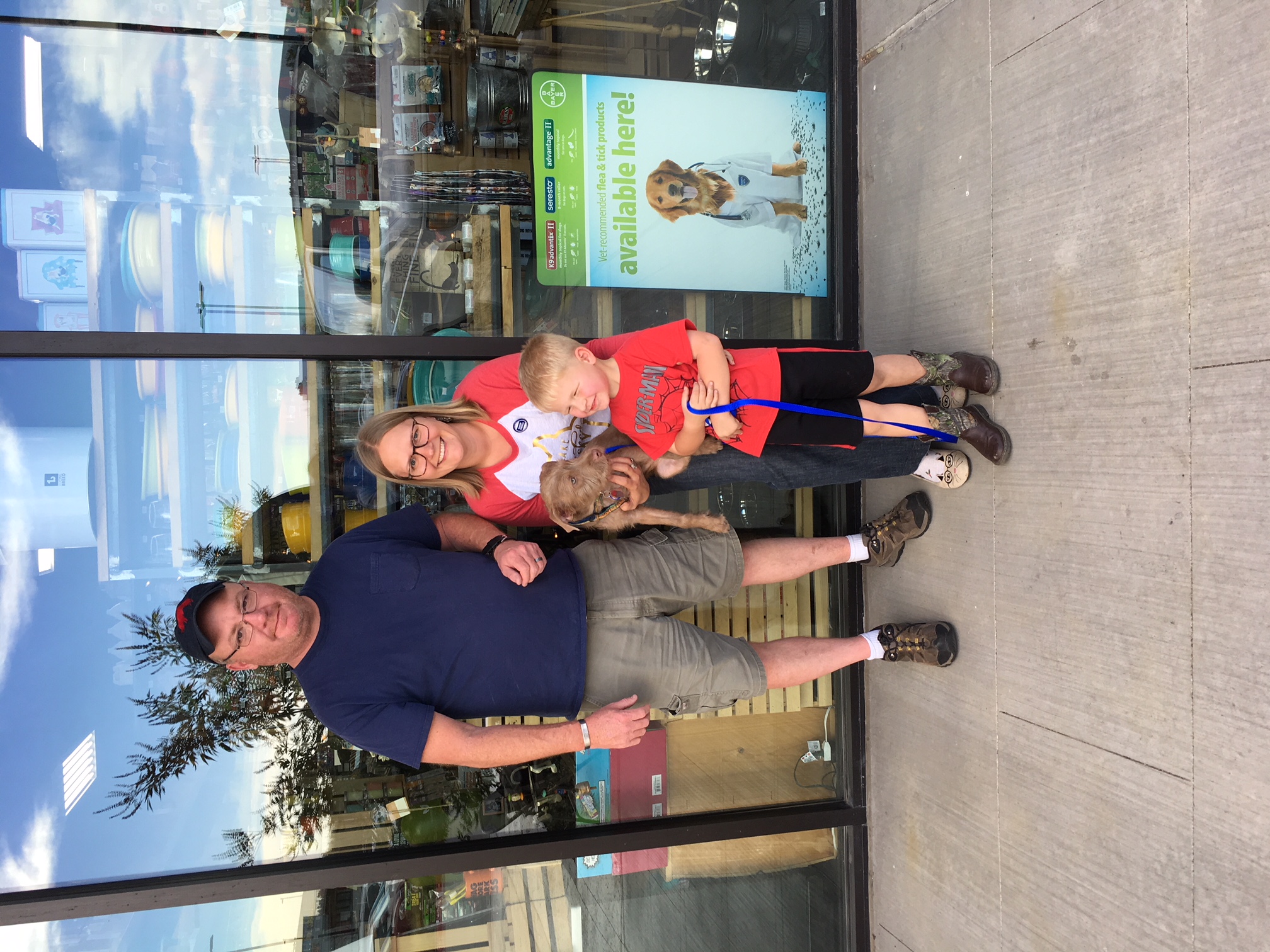 Gorgeous puppy, Gabe (whose super power is turning grown women into squealing teenagers just by coming in their vicinity!), is an only dog in his new family’s life and has a young human brother named JD to play with and grow up with. JD was VERY excited about adopting Gabe; the two of them will keep their parents busy!! Gabe’s name will be Marvin Gabe; JD insisted their new dog be called Marvin so they tacked it on to his existing name.