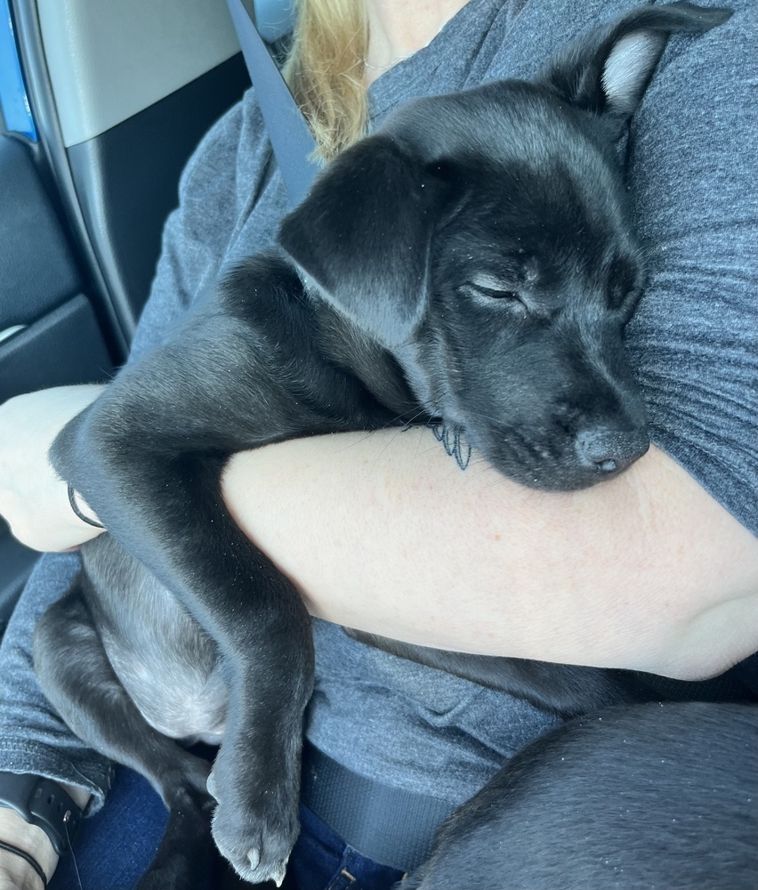She is now named Lady (which fits nicely with the L names of their other pets).  Her mom reports that one of her daughters takes culinary courses at school and enjoys baking for the dogs!