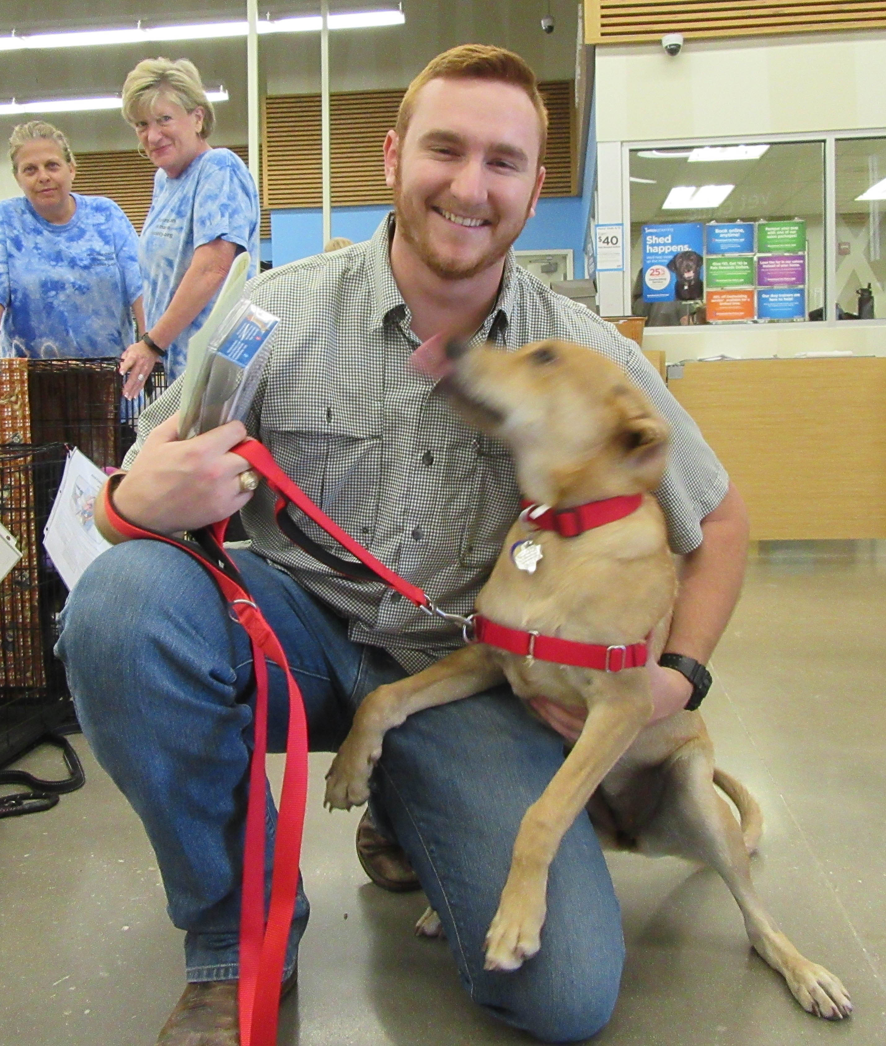 Sweetheart Jewel Annalise found her fur-ever home today!! Now named Georgia, she will be the only girl in her new dad’s life. He works close to home so he can visit Georgia at lunch, and maybe when she finishes growing up she’ll be able to go work with her dad. Her foster mom, Andie, wasn’t able to be at the adoption due to a prior commitment, but she sent along what has become her signature goodbye gift – a baby book with pictures from the day she got Jewel to their last night together. We all teared up a little at how beautiful it was!