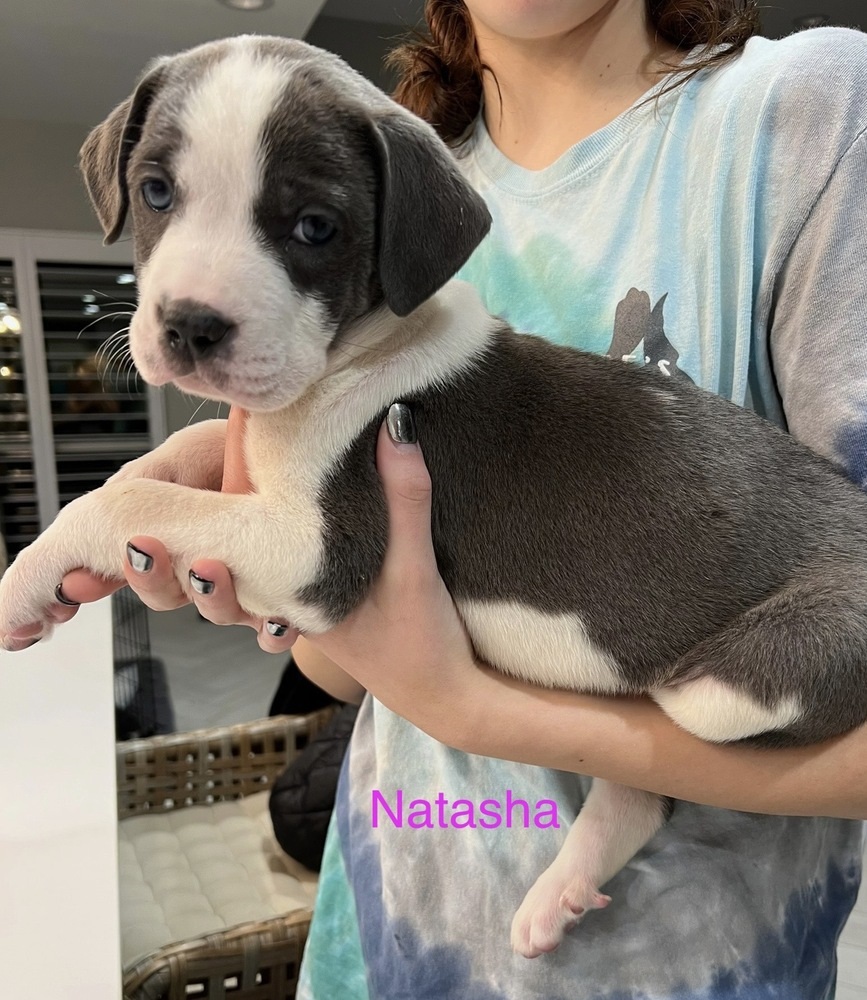 Natasha Romanoff is now called Izzy. She has human parents, three human kids and an older canine sister named Molly to call her own.