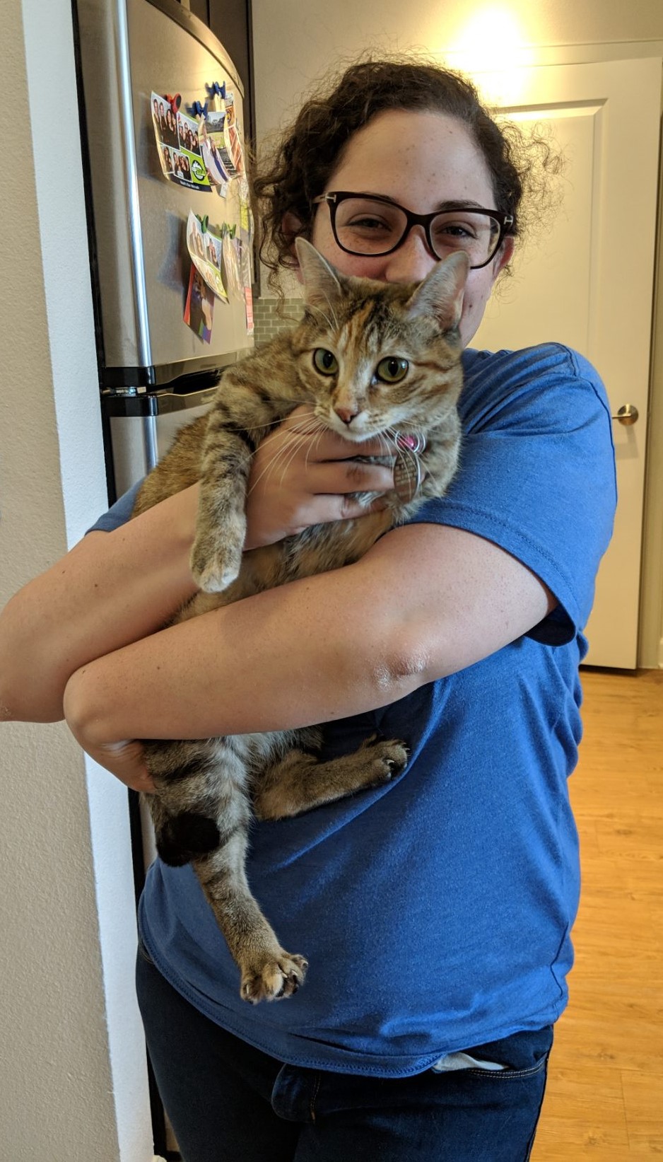Sweet kitty, Ruffles, found her fur-ever home today as well! She will be the only pet in her new mom’s life, so she’ll get lots of love and cuddles. Mama to kittens, Cheeto and Dorito (aka The Munchies), Ruffles was rescued from the Mesquite shelter. She was fostered first by Leasa Isom and then by Victoria West.